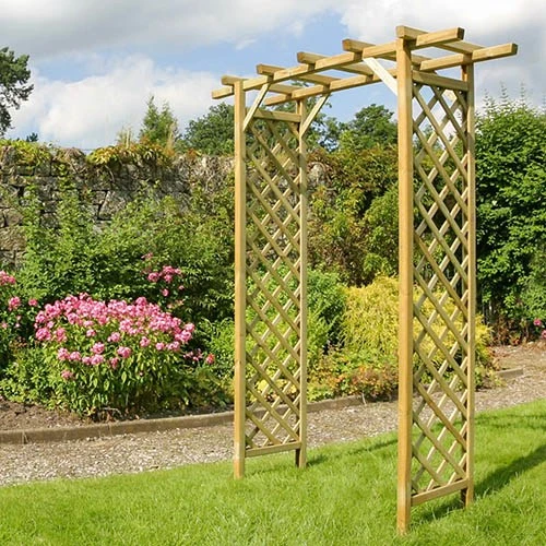 The diamond-design trellis side panels are perfect for supporting climbing plants, transforming the arch into a charming feature.